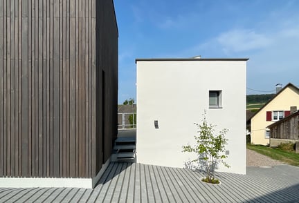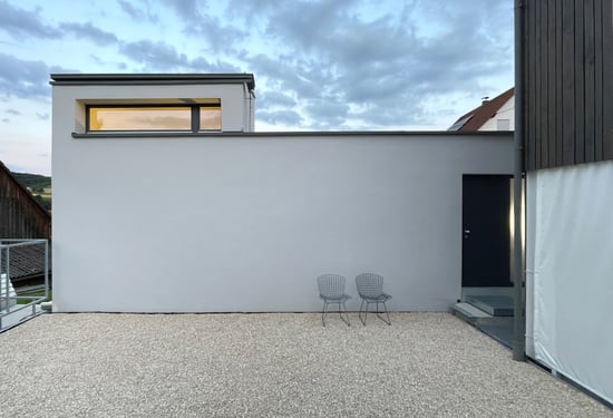 Das Zusammenspiel von Umbau und Neubau wird als Instrument einer auf den Ort und die Nutzung zugeschnittenen Entwurfskonzeption gesehen. Ein vorhan-dener Hühnerstall sowie der darunter-liegende Kellerraum blieben im Bestand erhalten und durch einen Dachaufbau sowie Anbau erweitert. Dieser Gebäude-teil dient als Büroraum mit kleiner Galerieebene
